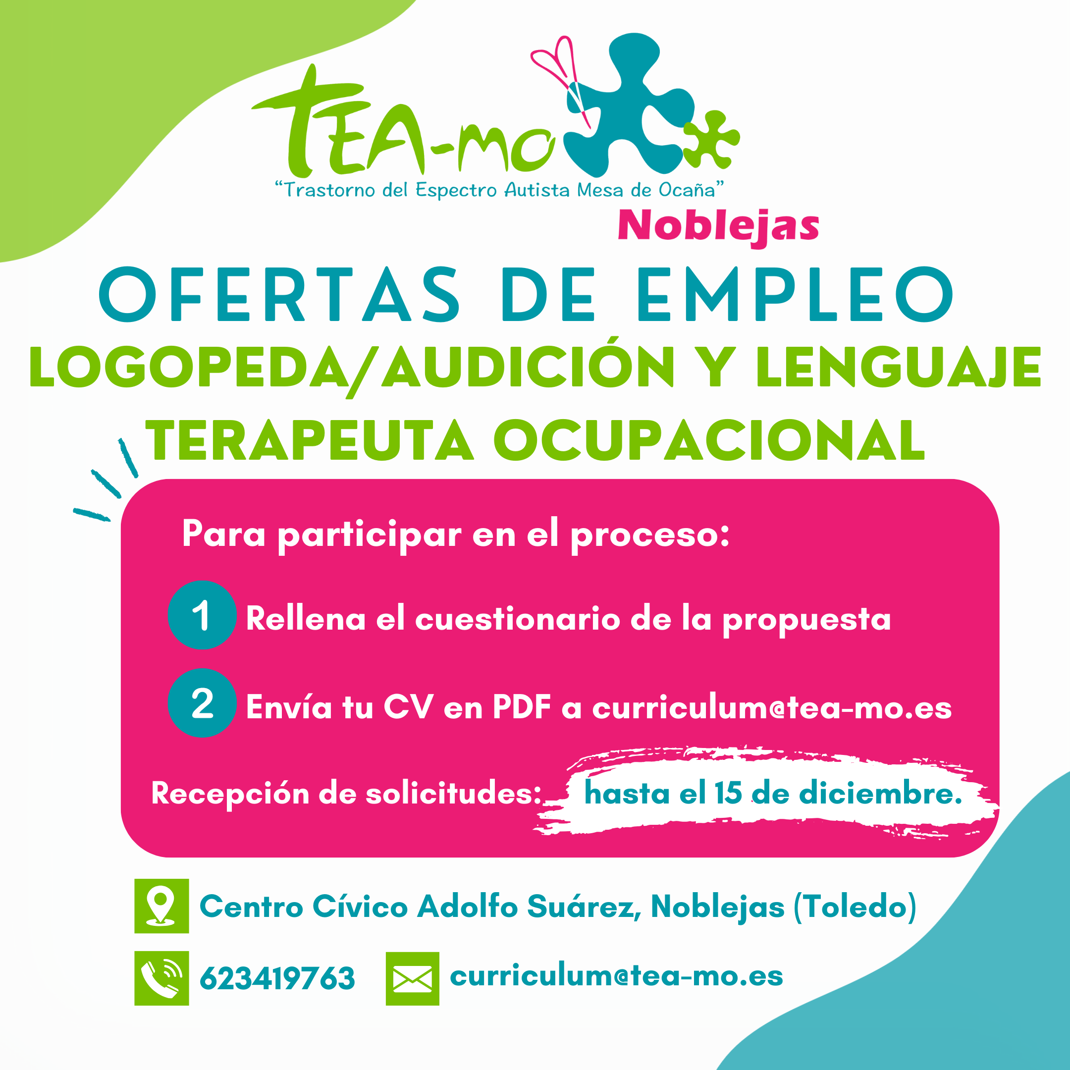 2. Enviar el currículum en formato PDF por correo electrónico con el asunto: «Oferta empleo Logopeda/AL» a: curriculum@tea-mo.es.